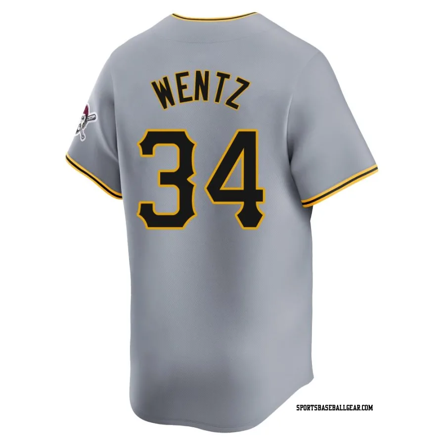 Get the Joey Wentz Men's Pittsburgh Pirates Gray Limited Away Jersey, showcasing the latest design and premium quality for dedicated fans. Elevate your baseball wardrobe now!