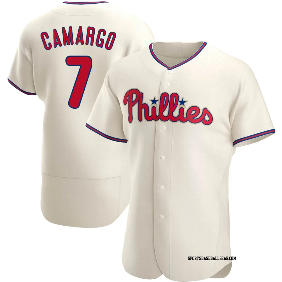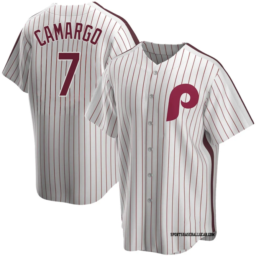 Get the Johan Camargo Men's Philadelphia Phillies White Replica Home Cooperstown Collection Jersey, showcasing the latest design and premium quality for dedicated fans. Elevate your baseball wardrobe now!