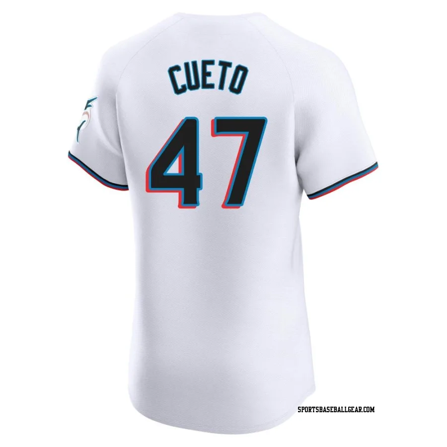Get the Johnny Cueto Men's Miami Marlins White Elite Home Jersey, showcasing the latest design and premium quality for dedicated fans. Elevate your baseball wardrobe now!