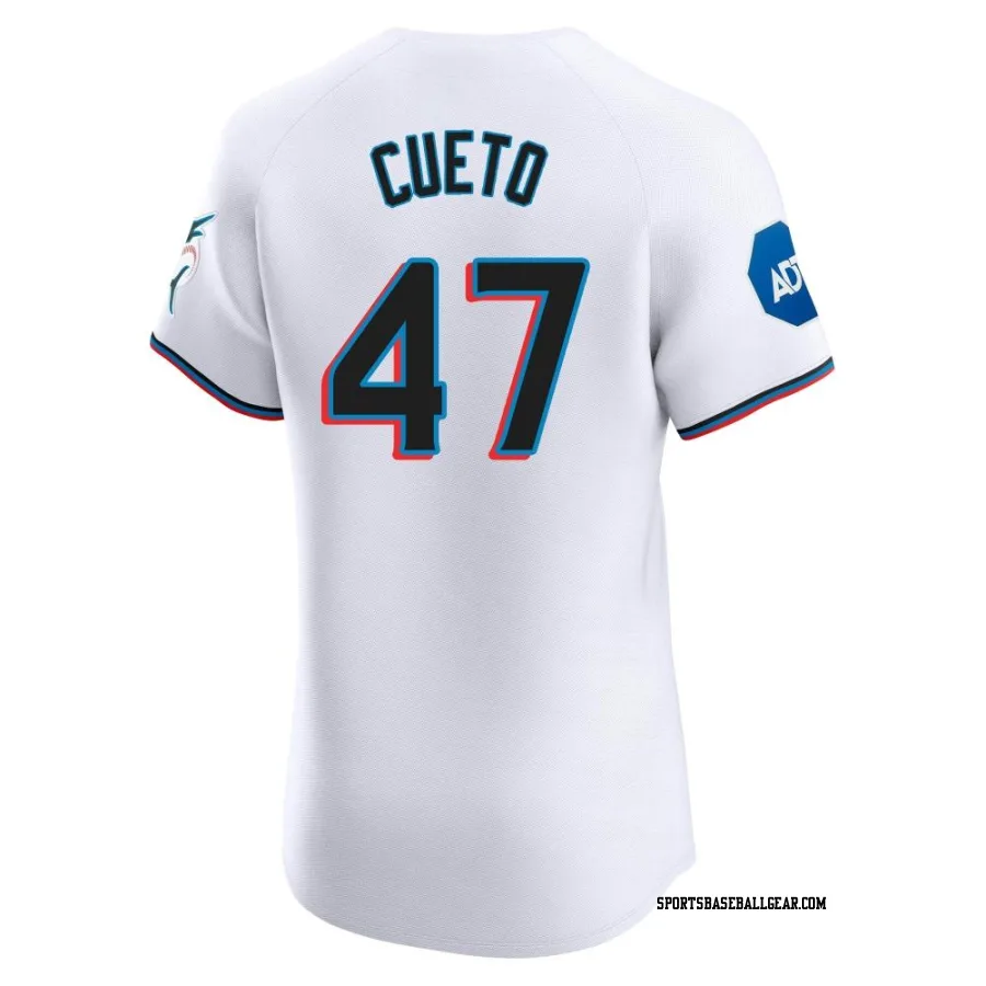 Get the Johnny Cueto Men's Miami Marlins White Elite Home Patch Jersey, showcasing the latest design and premium quality for dedicated fans. Elevate your baseball wardrobe now!