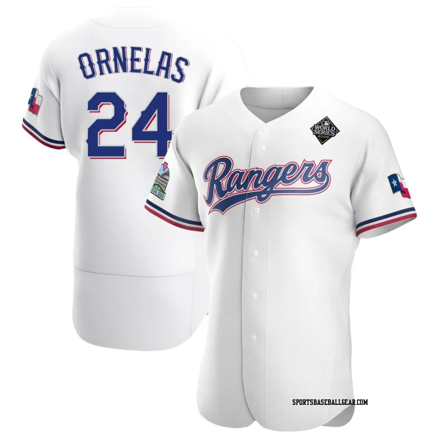 Get the Jonathan Ornelas Men's Texas Rangers White Authentic Home 2023 World Series Jersey, showcasing the latest design and premium quality for dedicated fans. Elevate your baseball wardrobe now!
