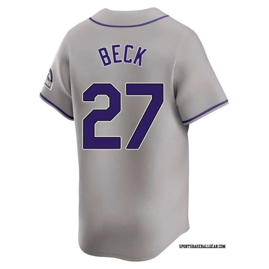 Get the Jordan Beck Youth Colorado Rockies Gray Limited Road Jersey, showcasing the latest design and premium quality for dedicated fans. Elevate your baseball wardrobe now!