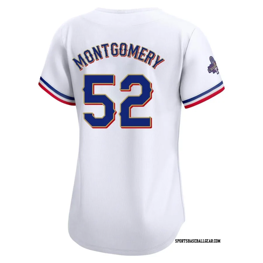 Get the Jordan Montgomery Women's Texas Rangers Gold Limited White 2024 Collection Jersey, showcasing the latest design and premium quality for dedicated fans. Elevate your baseball wardrobe now!