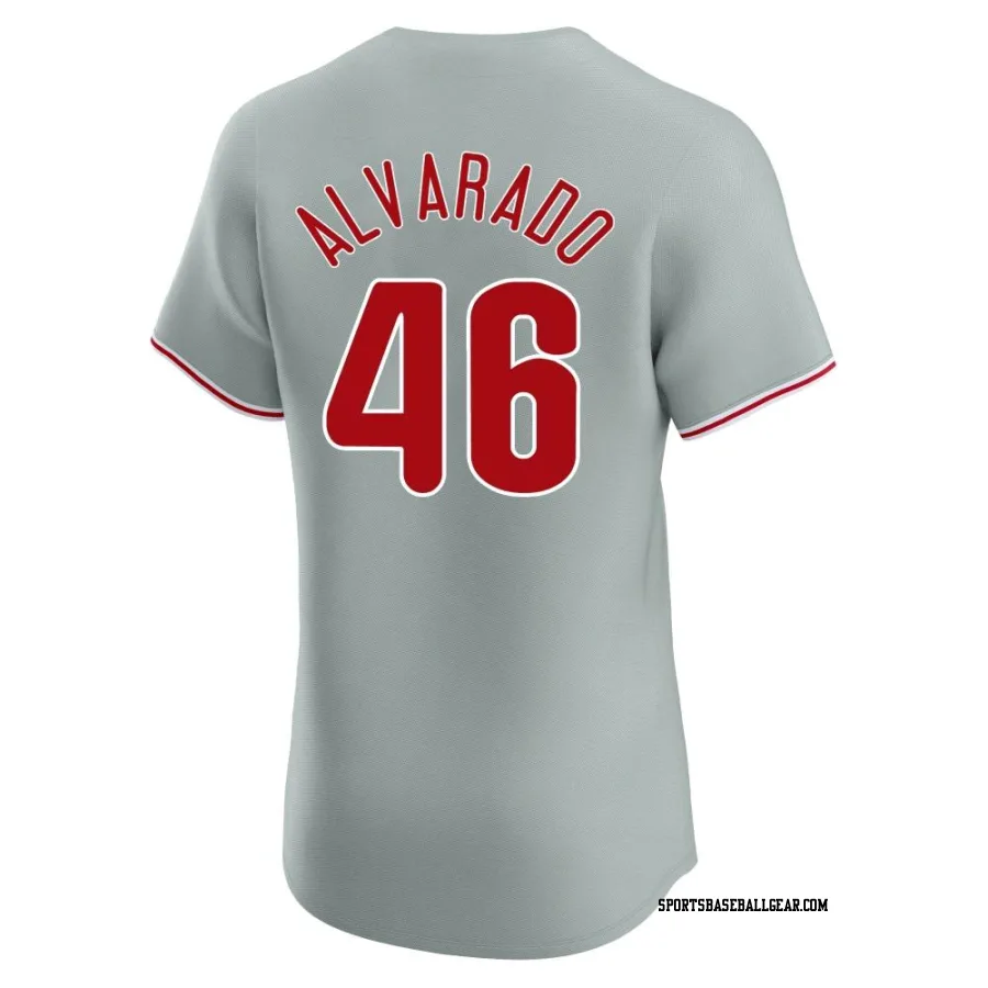 Get the Jose Alvarado Men's Philadelphia Phillies Gray Elite Road Jersey, showcasing the latest design and premium quality for dedicated fans. Elevate your baseball wardrobe now!
