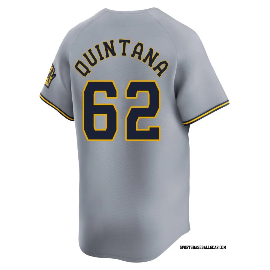 Get the Jose Quintana Men's Milwaukee Brewers Gray Limited Away Jersey, showcasing the latest design and premium quality for dedicated fans. Elevate your baseball wardrobe now!