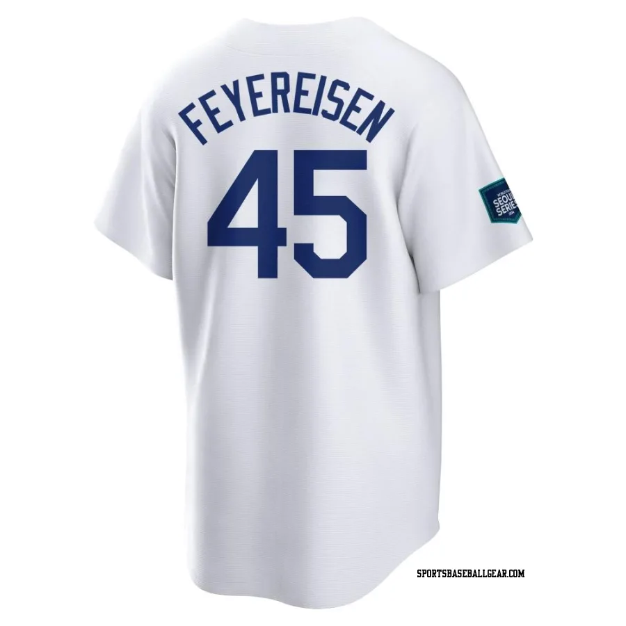 Get the J.P. Feyereisen Men's Los Angeles Dodgers White Replica 2024 World Tour Seoul Series Home Jersey, showcasing the latest design and premium quality for dedicated fans. Elevate your baseball wardrobe now!