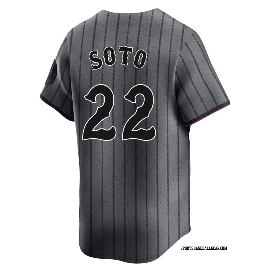 Get the Juan Soto Men's New York Mets Limited Graphite 2024 City Connect Jersey, showcasing the latest design and premium quality for dedicated fans. Elevate your baseball wardrobe now!