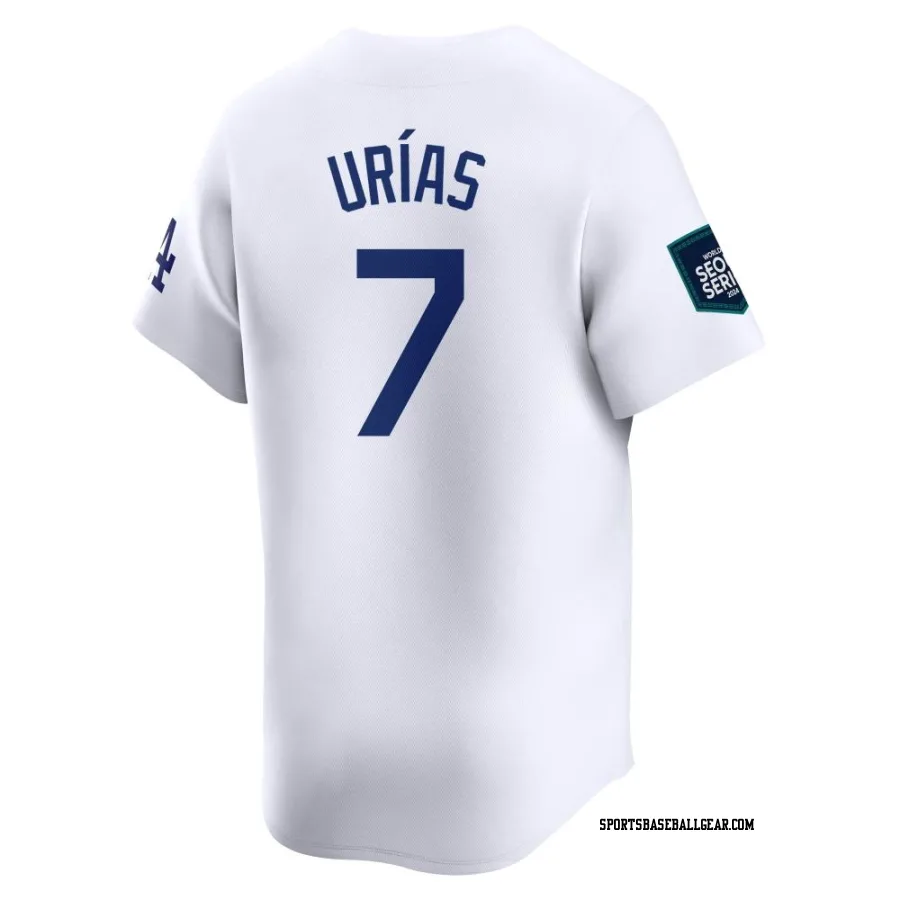 Get the Julio Urias Youth Los Angeles Dodgers White Limited 2024 World Tour Seoul Series Home Jersey, showcasing the latest design and premium quality for dedicated fans. Elevate your baseball wardrobe now!