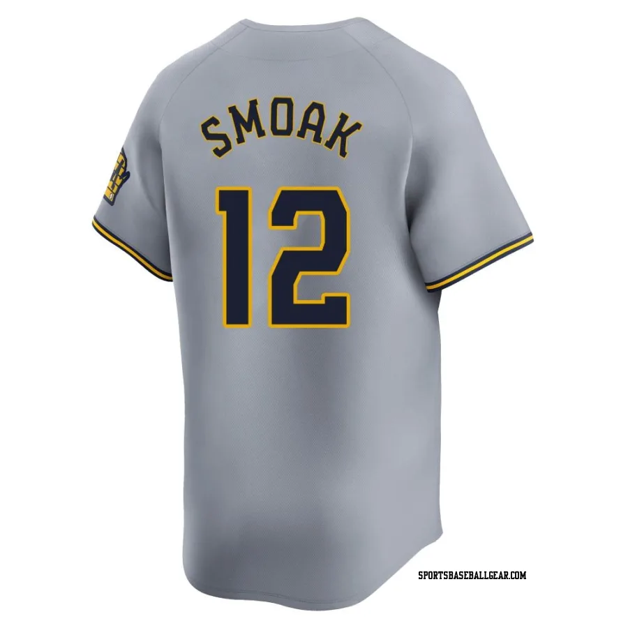 Get the Justin Smoak Youth Milwaukee Brewers Gray Limited Away Jersey, showcasing the latest design and premium quality for dedicated fans. Elevate your baseball wardrobe now!