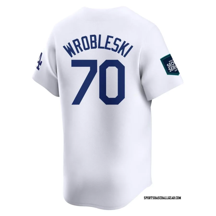 Get the Justin Wrobleski Men's Los Angeles Dodgers White Limited 2024 World Tour Seoul Series Home Jersey, showcasing the latest design and premium quality for dedicated fans. Elevate your baseball wardrobe now!