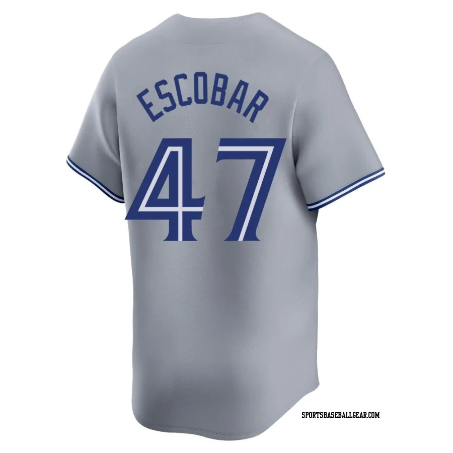 Get the Kelvim Escobar Youth Toronto Blue Jays Gray Limited Away Jersey, showcasing the latest design and premium quality for dedicated fans. Elevate your baseball wardrobe now!