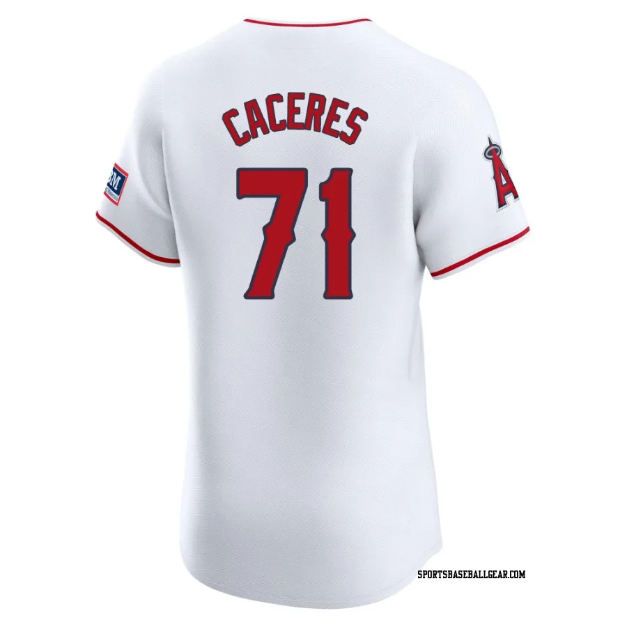Get the Kelvin Caceres Men's Los Angeles Angels White Elite Home Patch Jersey, showcasing the latest design and premium quality for dedicated fans. Elevate your baseball wardrobe now!