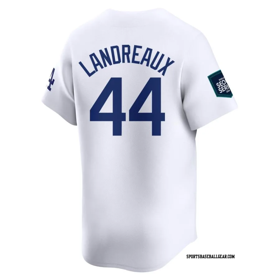 Get the Ken Landreaux Men's Los Angeles Dodgers White Limited 2024 World Tour Seoul Series Home Jersey, showcasing the latest design and premium quality for dedicated fans. Elevate your baseball wardrobe now!