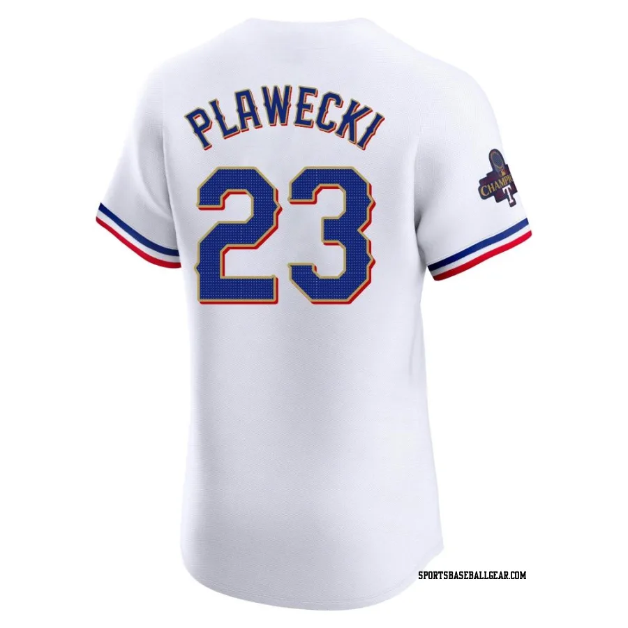 Kevin Plawecki Men's Texas Rangers Gold Elite White 2024 Collection Jersey