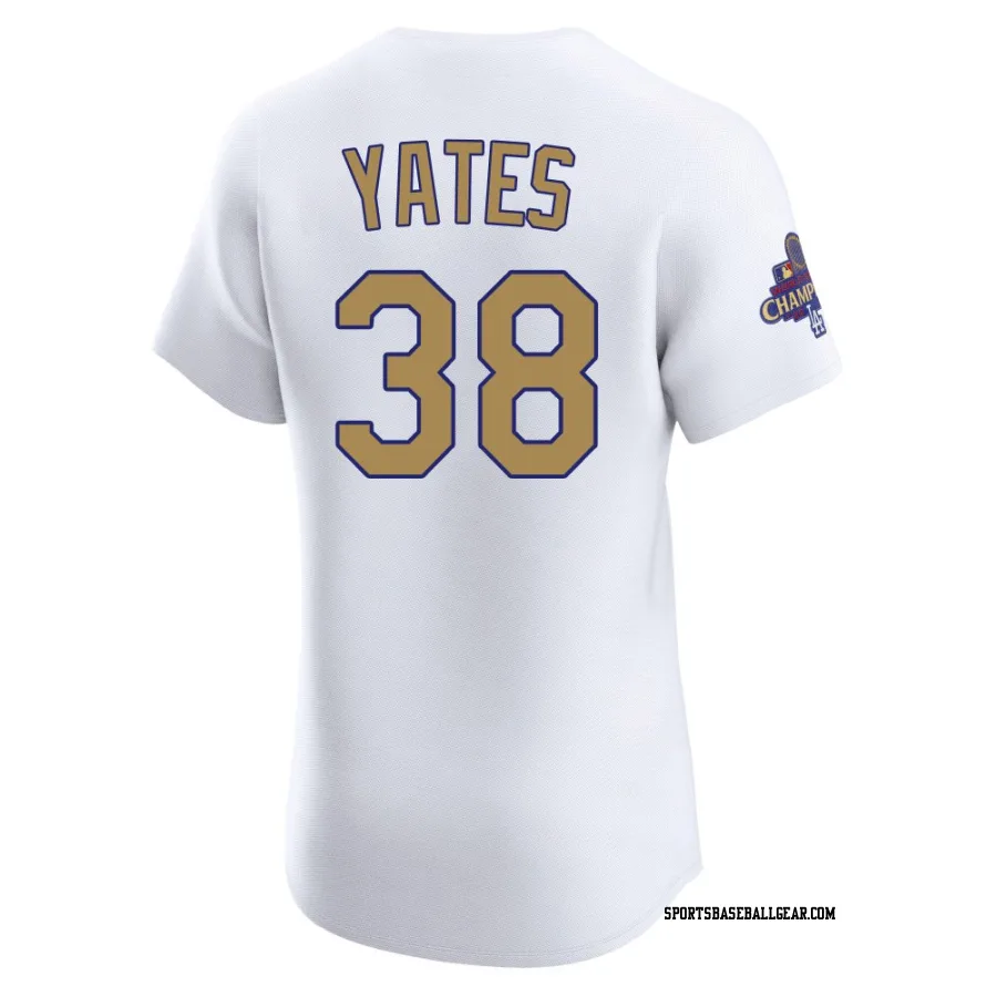Kirby Yates Men's Los Angeles Dodgers Gold Elite White 2025 Collection Jersey