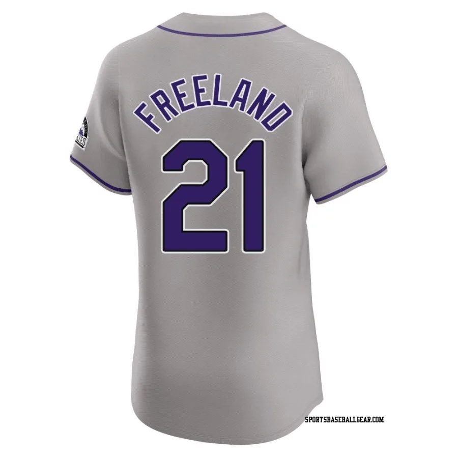 Get the Kyle Freeland Men's Colorado Rockies Gray Elite Road Jersey, showcasing the latest design and premium quality for dedicated fans. Elevate your baseball wardrobe now!