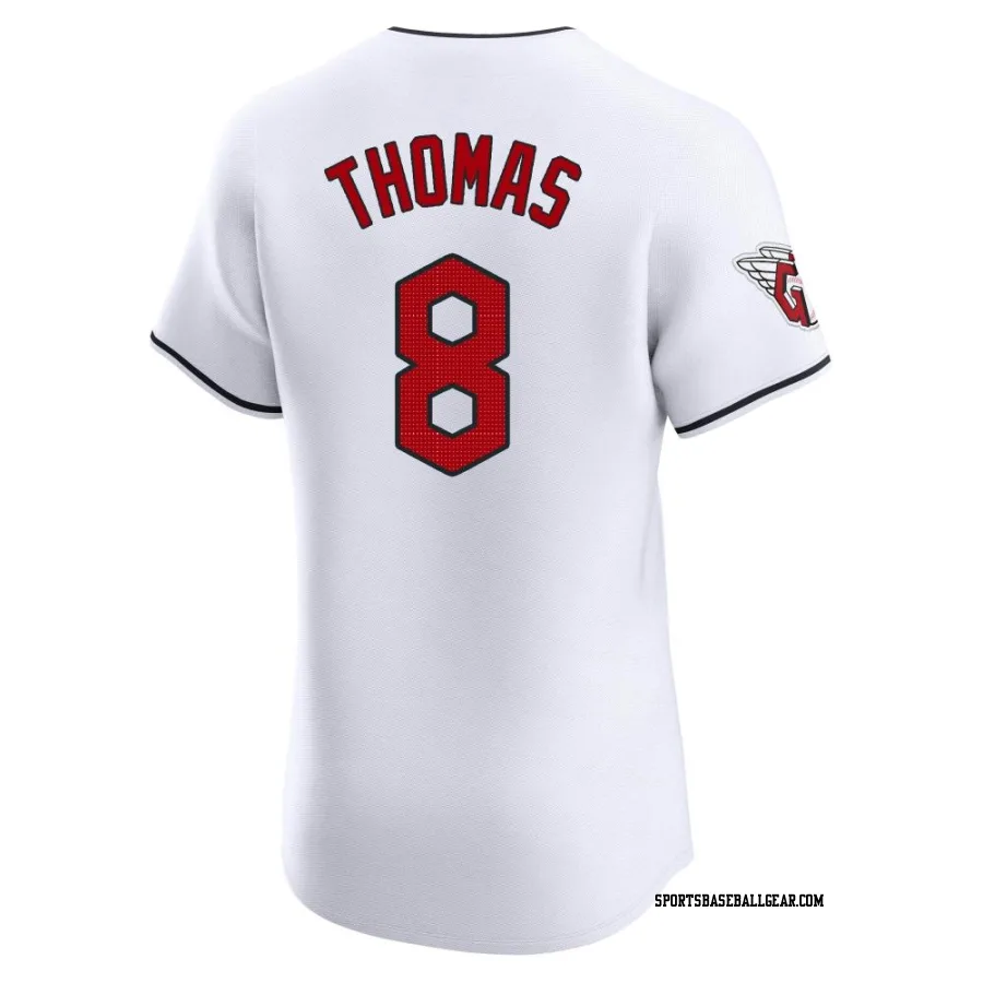 Get the Lane Thomas Men's Cleveland Guardians White Elite Home Jersey, showcasing the latest design and premium quality for dedicated fans. Elevate your baseball wardrobe now!