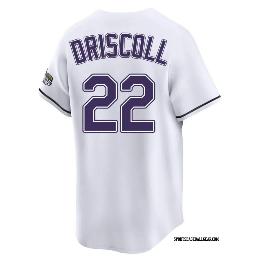 Get the Logan Driscoll Men's Tampa Bay Rays White Limited Throwback Cooperstown Jersey, showcasing the latest design and premium quality for dedicated fans. Elevate your baseball wardrobe now!