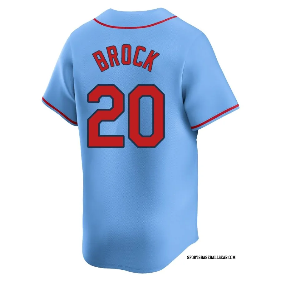 Get the Lou Brock Men's St. Louis Cardinals Light Blue Limited Alternate Jersey, showcasing the latest design and premium quality for dedicated fans. Elevate your baseball wardrobe now!