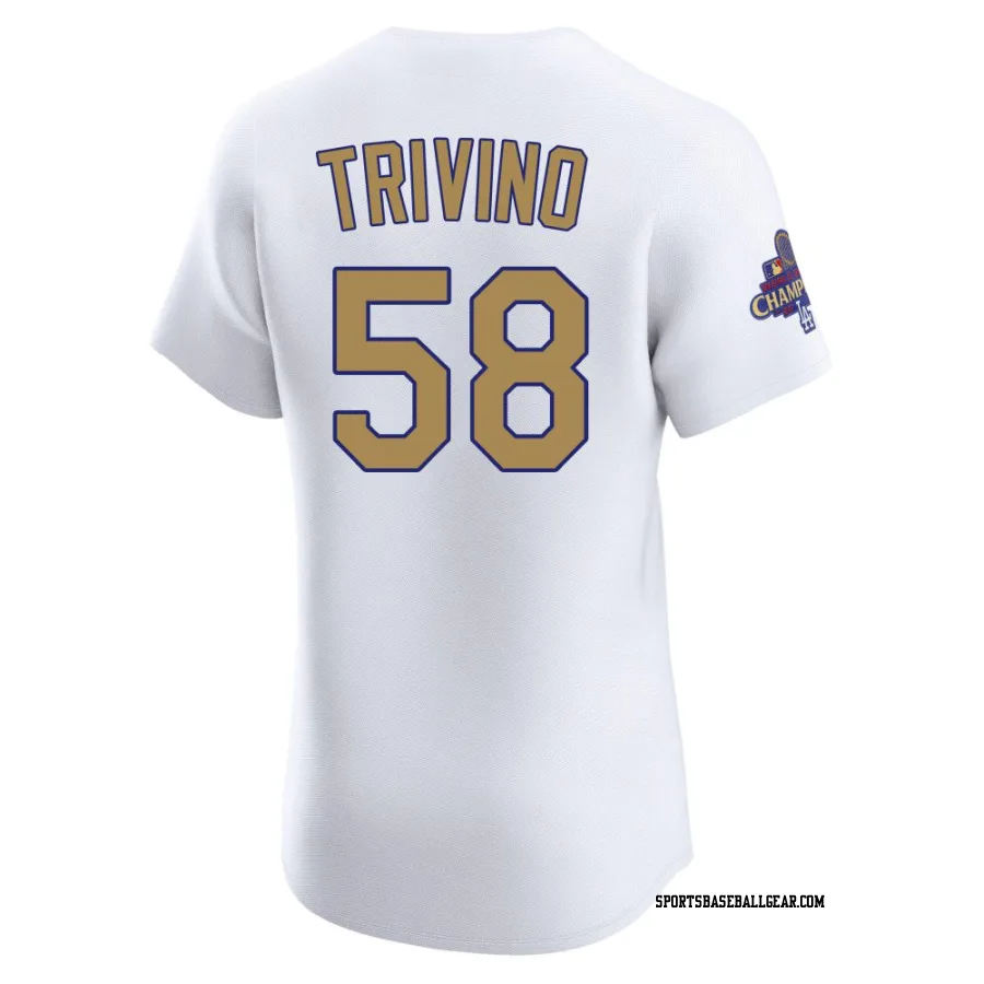 Lou Trivino Men's Los Angeles Dodgers Gold Elite White 2025 Collection Jersey