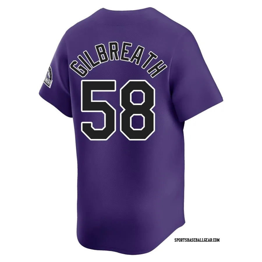Get the Lucas Gilbreath Youth Colorado Rockies Purple Limited Alternate Jersey, showcasing the latest design and premium quality for dedicated fans. Elevate your baseball wardrobe now!