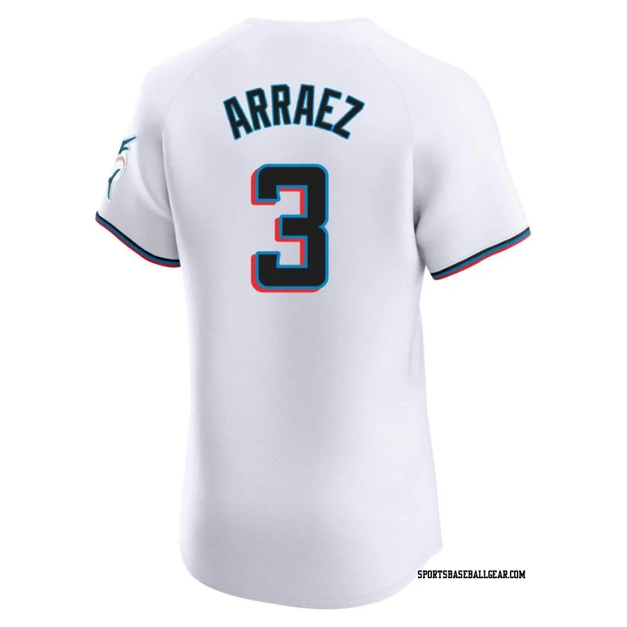 Get the Luis Arraez Men's Miami Marlins White Elite Home Jersey, showcasing the latest design and premium quality for dedicated fans. Elevate your baseball wardrobe now!