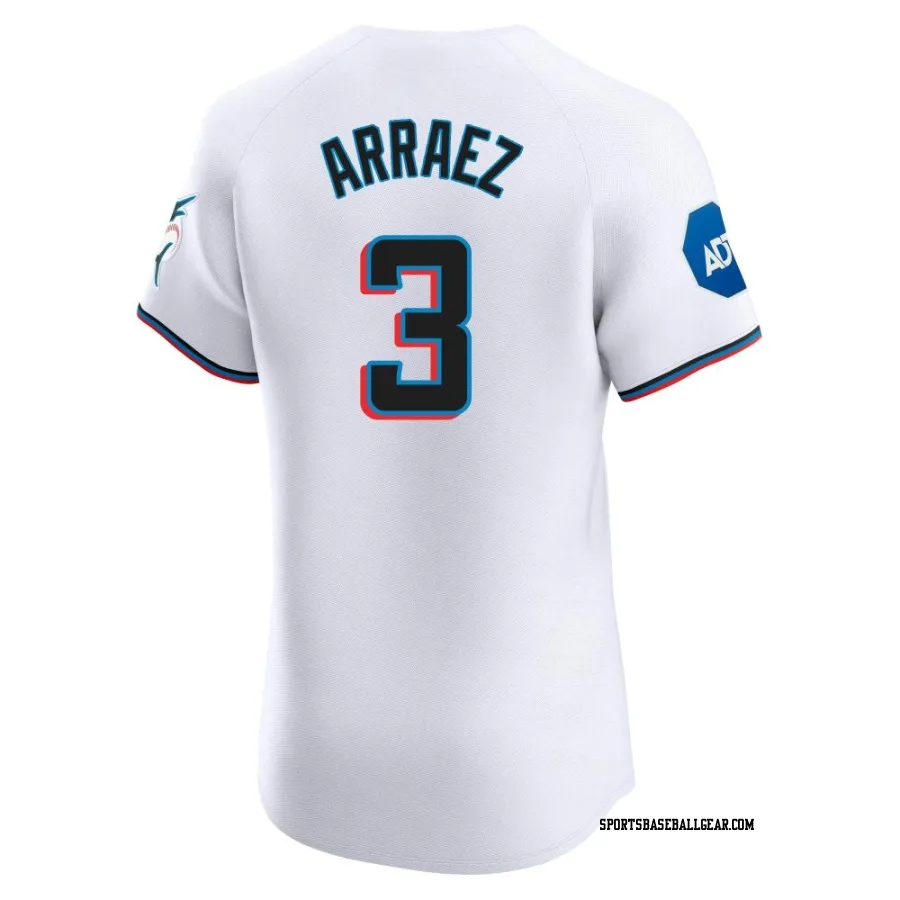 Get the Luis Arraez Men's Miami Marlins White Elite Home Patch Jersey, showcasing the latest design and premium quality for dedicated fans. Elevate your baseball wardrobe now!