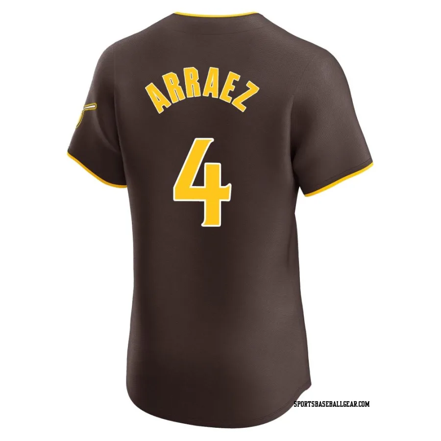 Get the Luis Arraez Men's San Diego Padres Brown Elite Road Vapor Premier Jersey, showcasing the latest design and premium quality for dedicated fans. Elevate your baseball wardrobe now!
