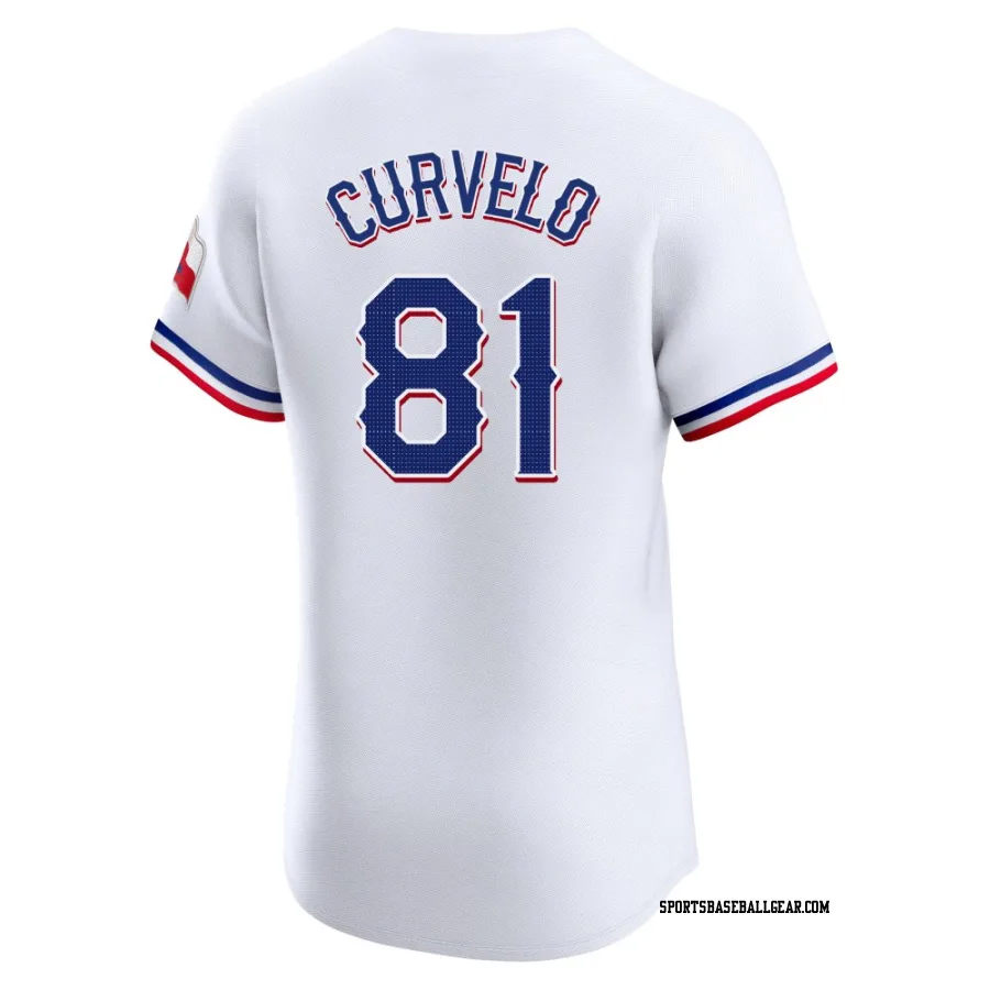 Get the Luis Curvelo Men's Texas Rangers White Elite Home Jersey, showcasing the latest design and premium quality for dedicated fans. Elevate your baseball wardrobe now!