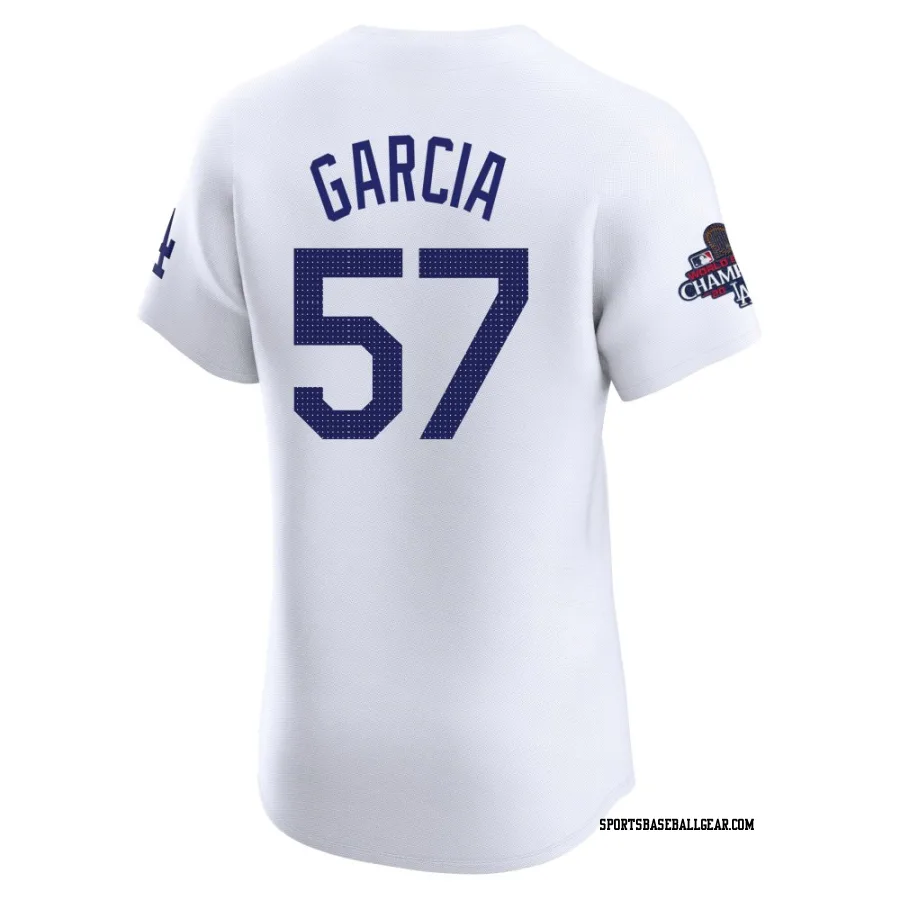 Get the Luis Garcia Men's Los Angeles Dodgers White Elite Home World Series Champions Jersey, showcasing the latest design and premium quality for dedicated fans. Elevate your baseball wardrobe now!
