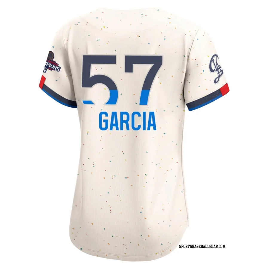 Get the Luis Garcia Women's Los Angeles Dodgers Cream Limited 2024 City Connect World Series Champions Jersey, showcasing the latest design and premium quality for dedicated fans. Elevate your baseball wardrobe now!
