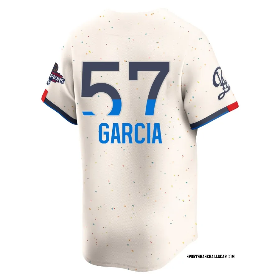 Get the Luis Garcia Youth Los Angeles Dodgers Cream Limited 2024 City Connect World Series Champions Jersey, showcasing the latest design and premium quality for dedicated fans. Elevate your baseball wardrobe now!