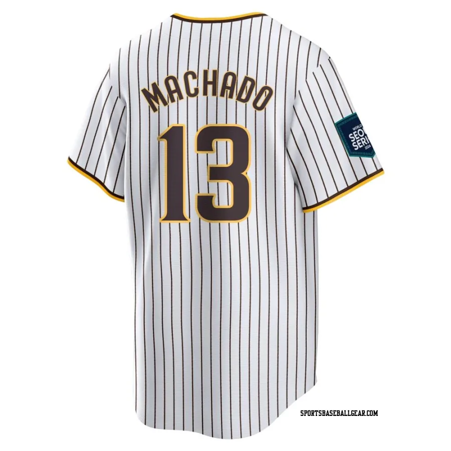 Get the Manny Machado Youth San Diego Padres White Replica 2024 World Tour Seoul Series Home Jersey, showcasing the latest design and premium quality for dedicated fans. Elevate your baseball wardrobe now!