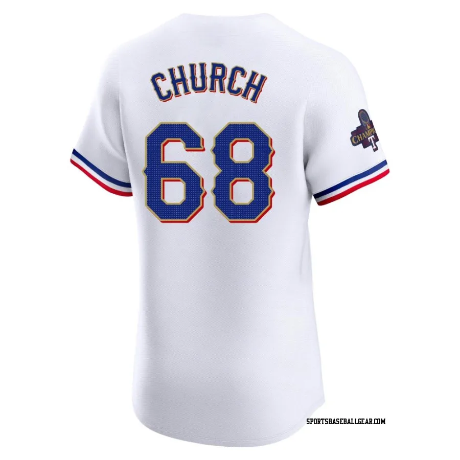 Marc Church Men's Texas Rangers Gold Elite White 2024 Collection Jersey