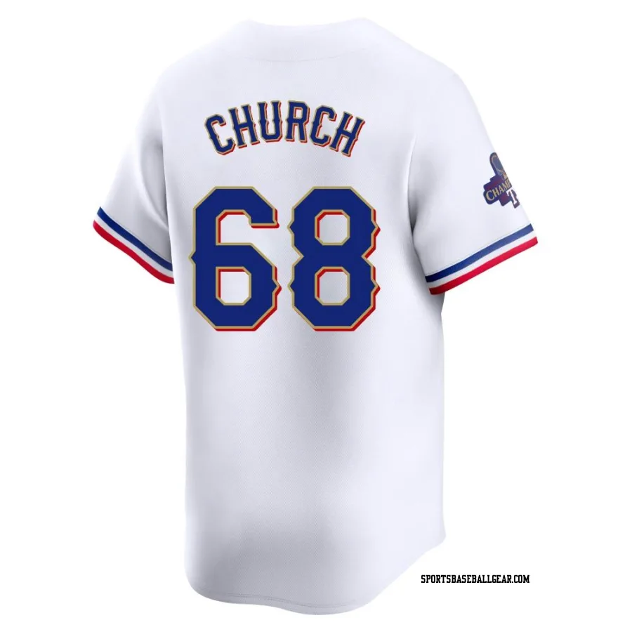 Get the Marc Church Men's Texas Rangers Gold Limited White 2024 Collection Jersey, showcasing the latest design and premium quality for dedicated fans. Elevate your baseball wardrobe now!