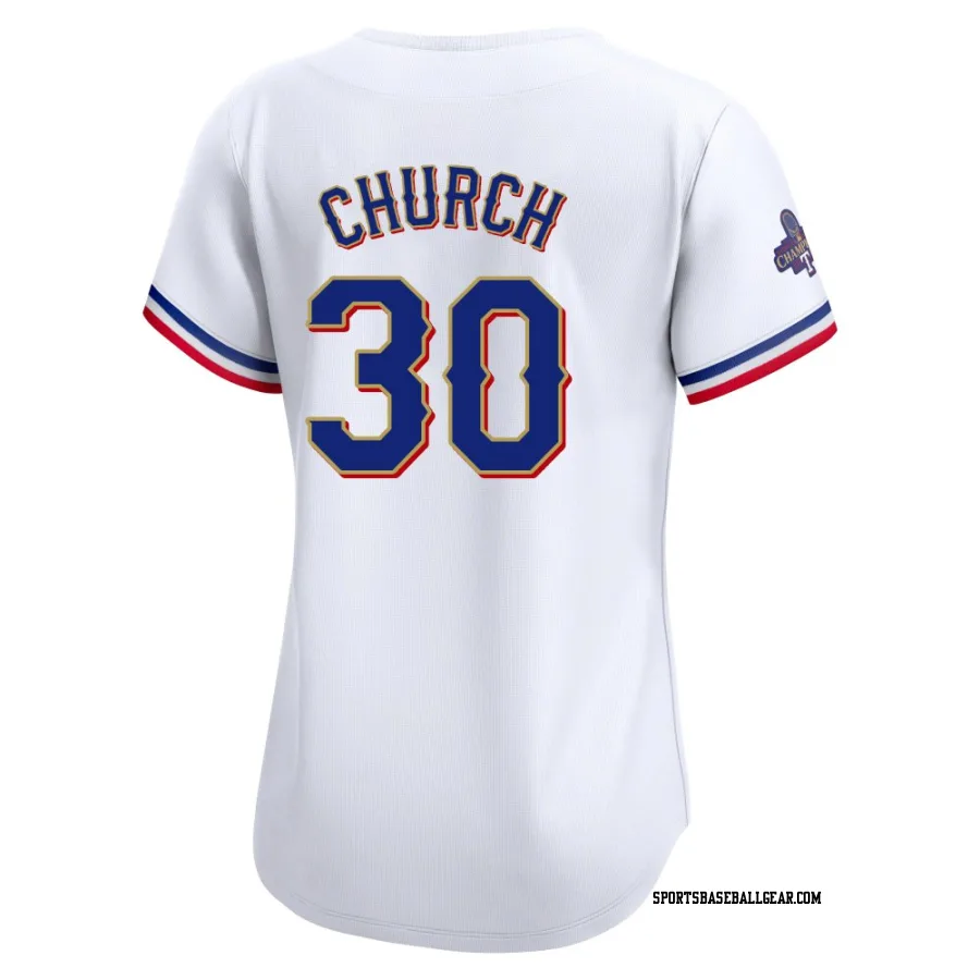 Get the Marc Church Women's Texas Rangers Gold Limited White 2024 Collection Jersey, showcasing the latest design and premium quality for dedicated fans. Elevate your baseball wardrobe now!