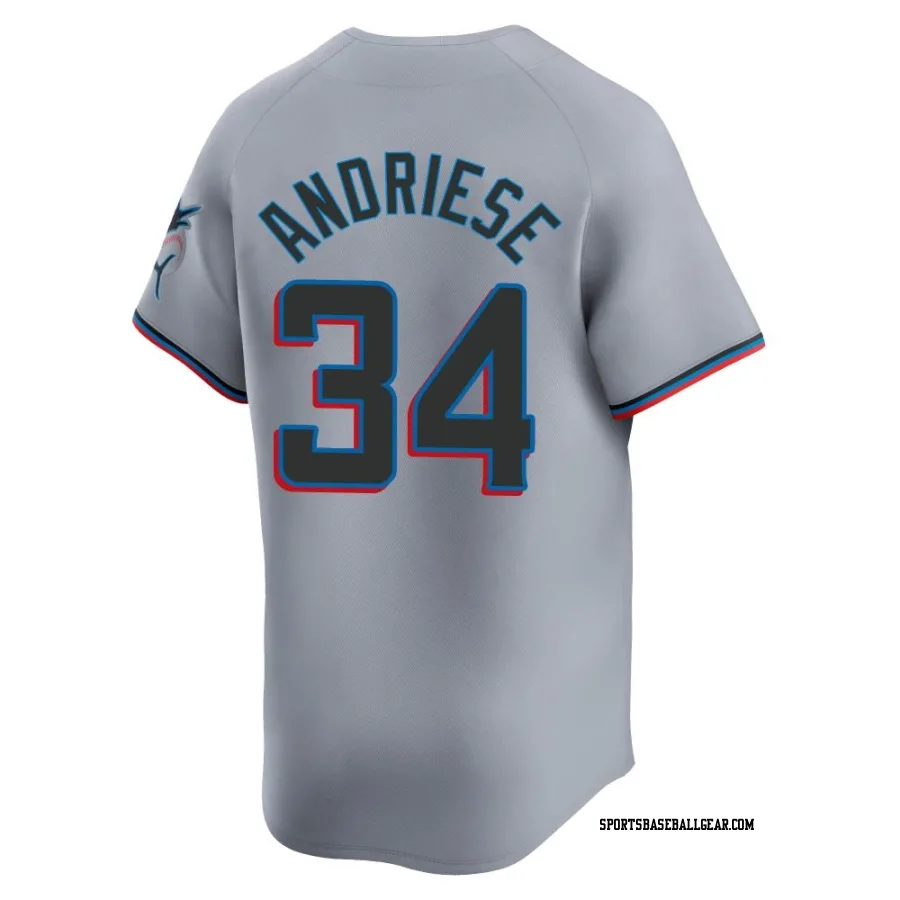 Get the Matt Andriese Men's Miami Marlins Gray Limited Road Jersey, showcasing the latest design and premium quality for dedicated fans. Elevate your baseball wardrobe now!