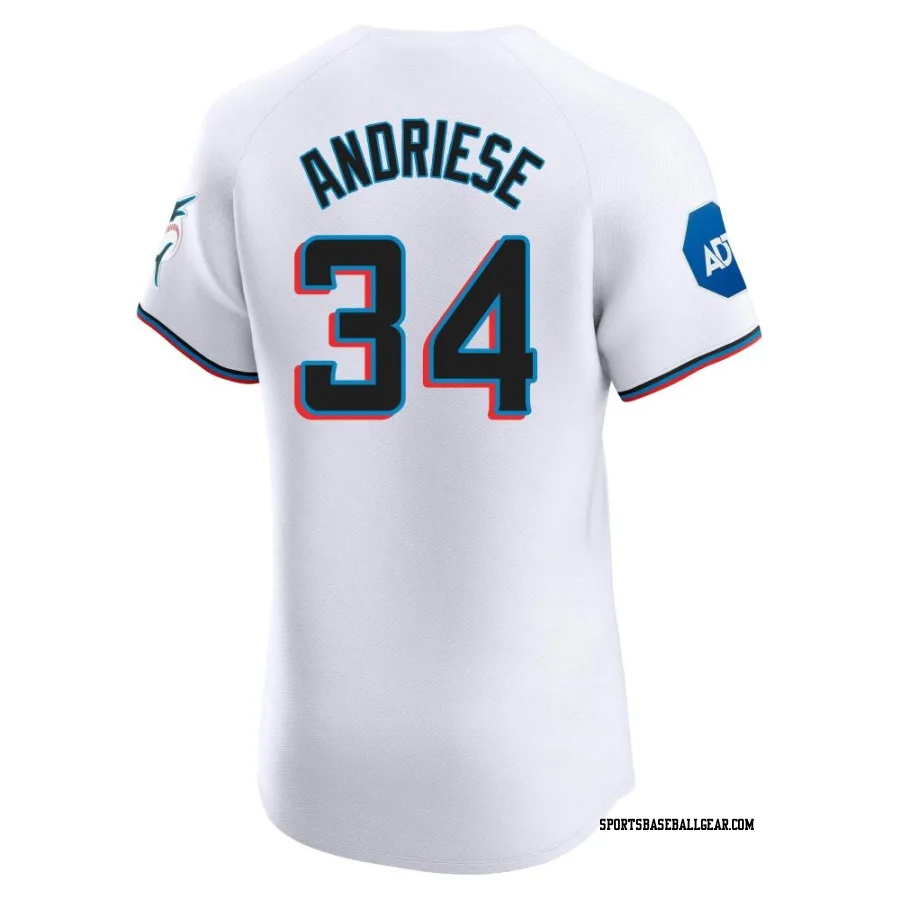 Get the Matt Andriese Men's Miami Marlins White Elite Home Patch Jersey, showcasing the latest design and premium quality for dedicated fans. Elevate your baseball wardrobe now!