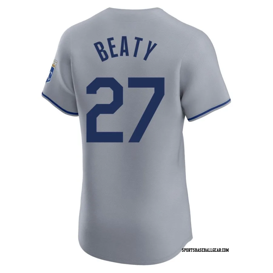 Get the Matt Beaty Men's Kansas City Royals Gray Elite Road Jersey, showcasing the latest design and premium quality for dedicated fans. Elevate your baseball wardrobe now!