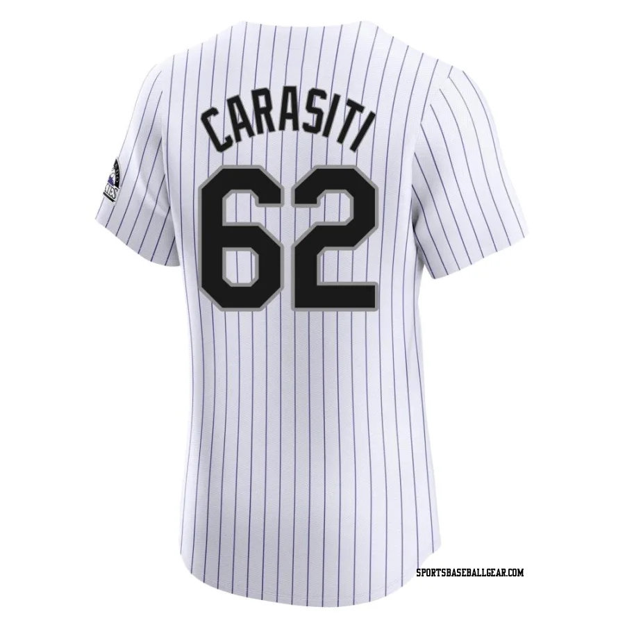 Get the Matt Carasiti Men's Colorado Rockies White Elite Home Jersey, showcasing the latest design and premium quality for dedicated fans. Elevate your baseball wardrobe now!
