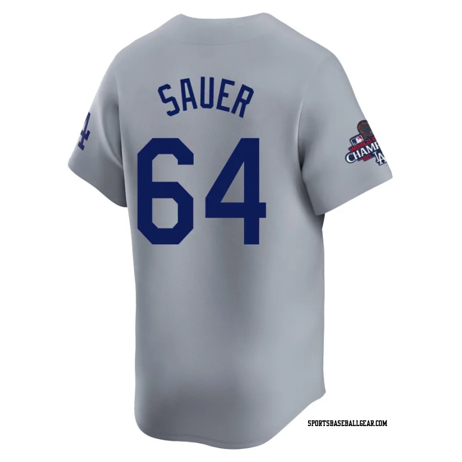 Get the Matt Sauer Men's Los Angeles Dodgers Gray Limited Away World Series Champions Jersey, showcasing the latest design and premium quality for dedicated fans. Elevate your baseball wardrobe now!