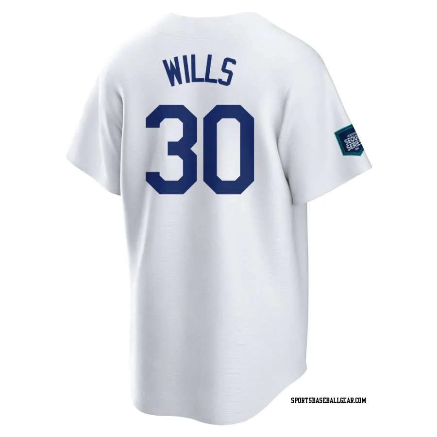 Get the Maury Wills Men's Los Angeles Dodgers White Replica 2024 World Tour Seoul Series Home Jersey, showcasing the latest design and premium quality for dedicated fans. Elevate your baseball wardrobe now!
