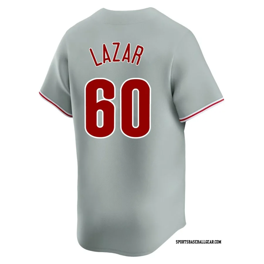 Get the Max Lazar Men's Philadelphia Phillies Gray Limited Away Jersey, showcasing the latest design and premium quality for dedicated fans. Elevate your baseball wardrobe now!