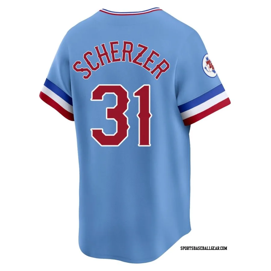 Max Scherzer Men's Texas Rangers Light Blue Limited Cooperstown Collection Jersey