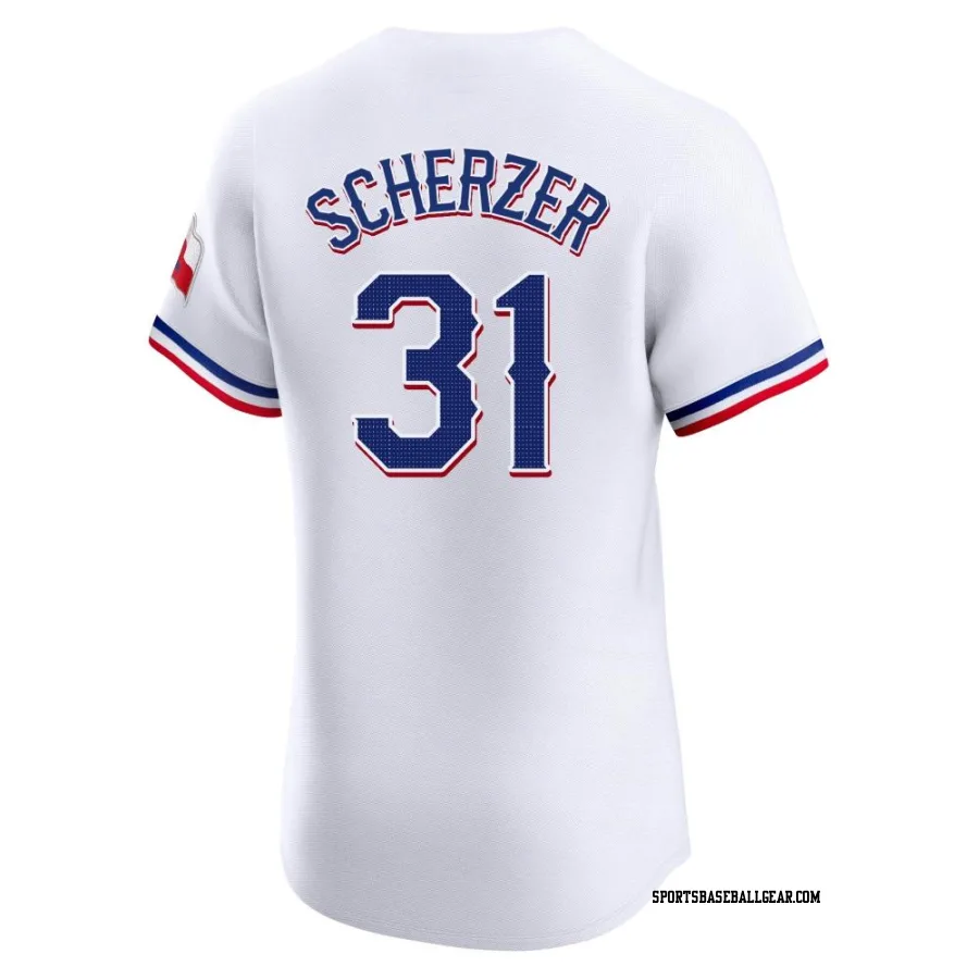 Get the Max Scherzer Men's Texas Rangers White Elite Home Jersey, showcasing the latest design and premium quality for dedicated fans. Elevate your baseball wardrobe now!