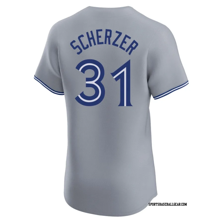Get the Max Scherzer Men's Toronto Blue Jays Gray Elite Road Jersey, showcasing the latest design and premium quality for dedicated fans. Elevate your baseball wardrobe now!