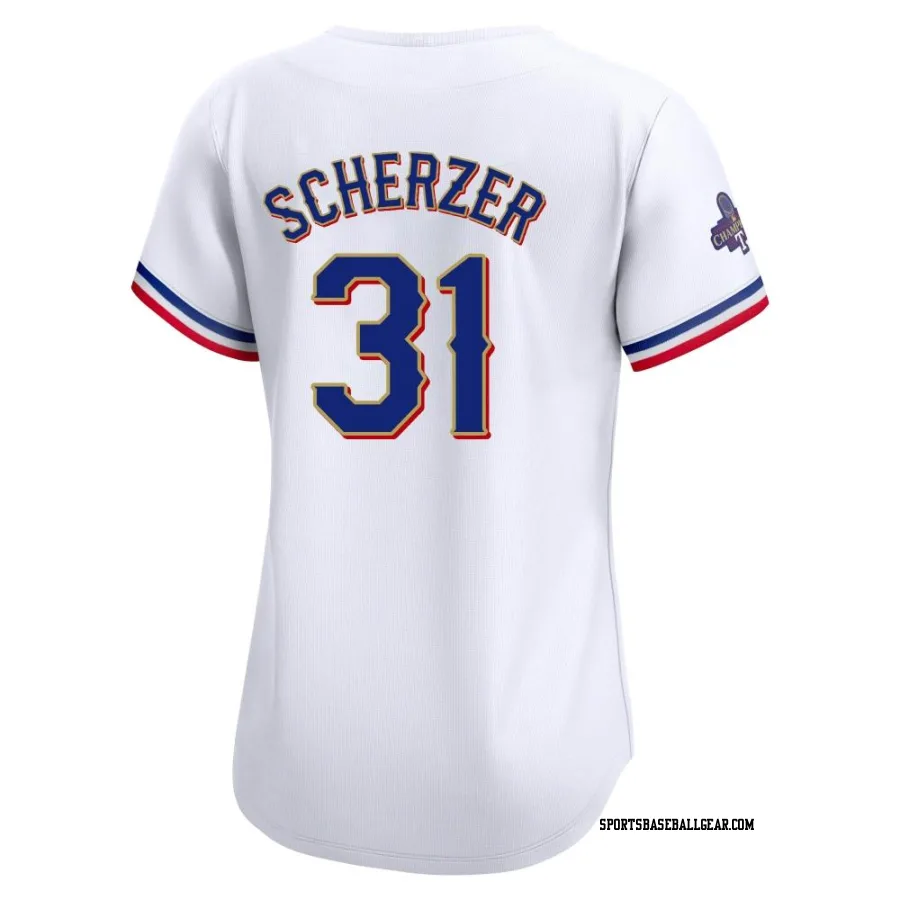 Max Scherzer Women's Texas Rangers Gold Limited White 2024 Collection Jersey