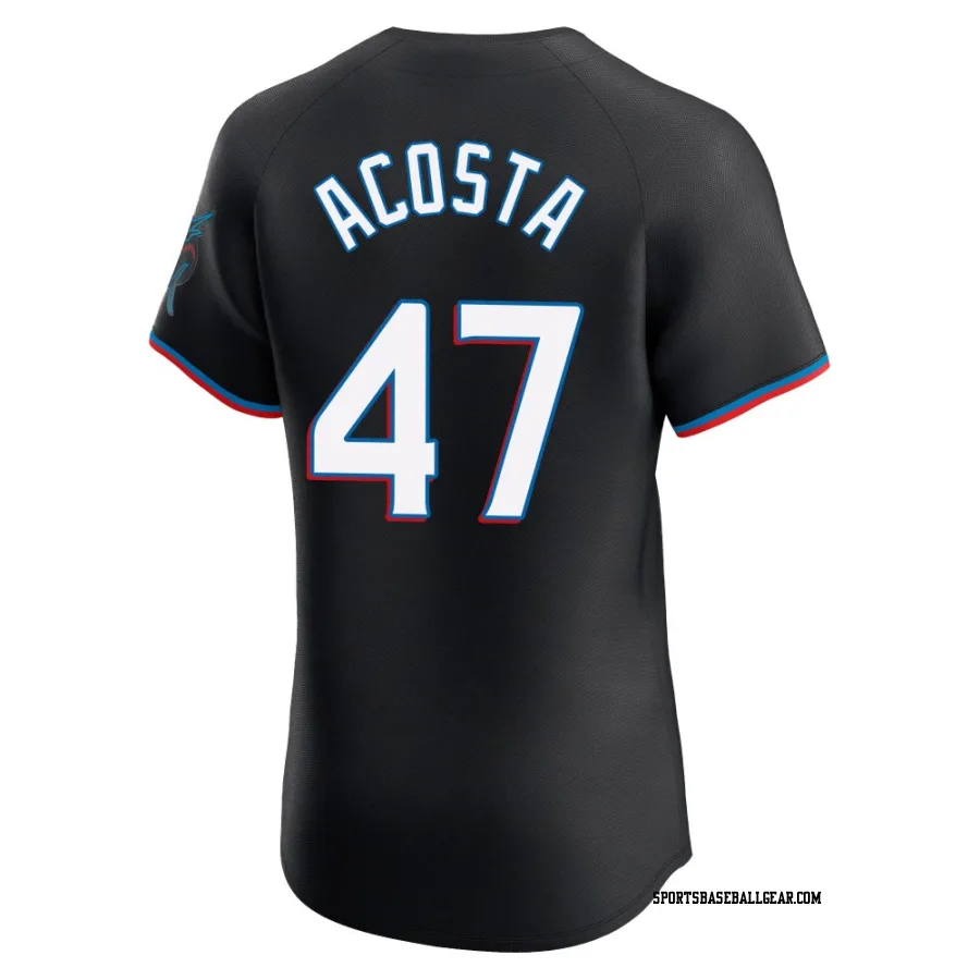 Get the Maximo Acosta Men's Miami Marlins Black Elite Alternate Vapor Premier Jersey, showcasing the latest design and premium quality for dedicated fans. Elevate your baseball wardrobe now!