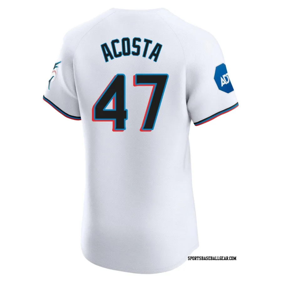 Get the Maximo Acosta Men's Miami Marlins White Elite Home Patch Jersey, showcasing the latest design and premium quality for dedicated fans. Elevate your baseball wardrobe now!