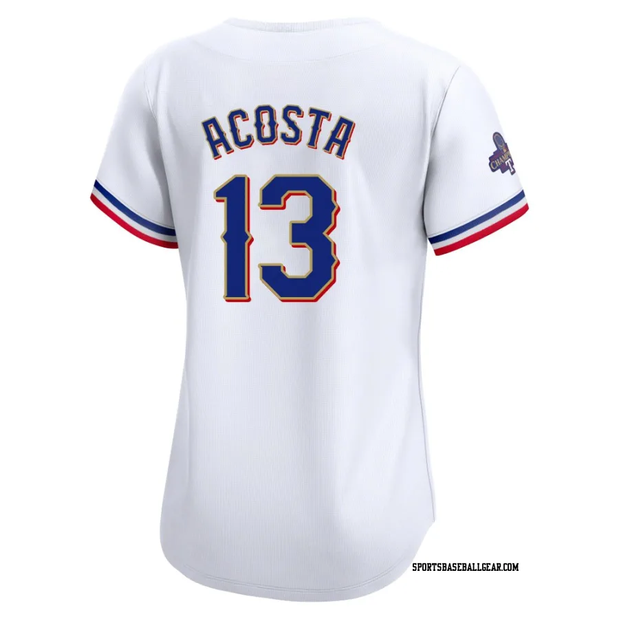 Get the Maximo Acosta Women's Texas Rangers Gold Limited White 2024 Collection Jersey, showcasing the latest design and premium quality for dedicated fans. Elevate your baseball wardrobe now!